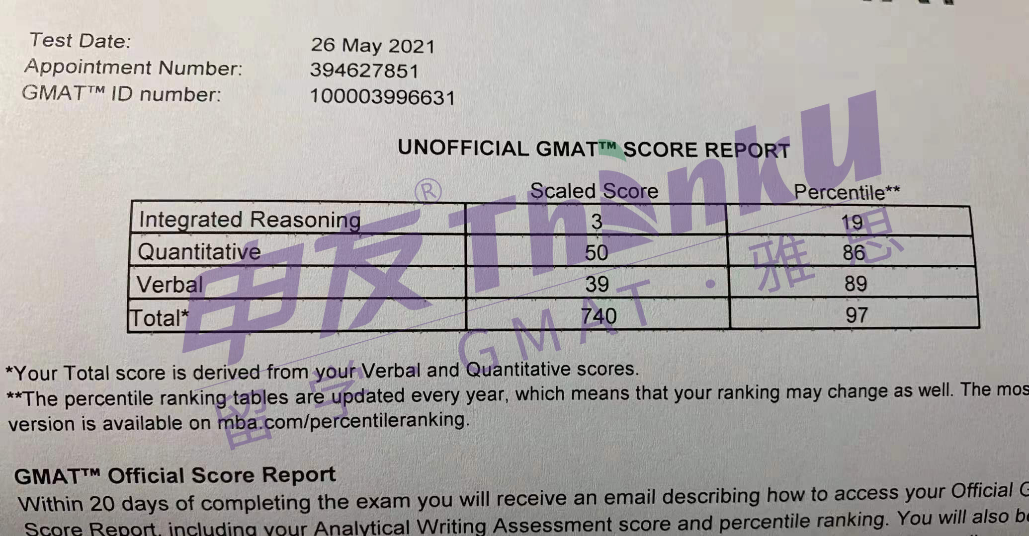 考试分数:GMAT700分申友GMAT学员蔡同学5月26日出分740