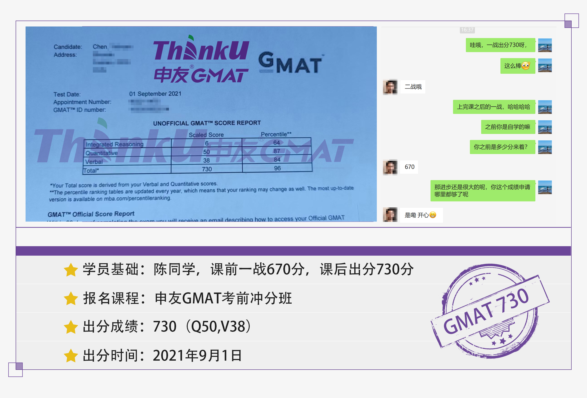 考试分数:710申友GMAT学员陈同学9月1日出分730
