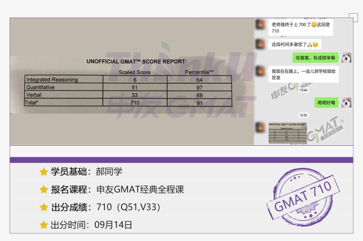 考试分数:720申友GMAT学员郝同学9月14日出分710