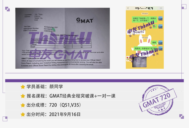 考试分数:760申友GMAT学员颜同学9月16日出分720